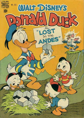 I distinctly remember, in third grade, having a massive stack of Gold Keys, Harveys and Charltons to look through. Donald Duck, Uncle Scrooge, Richie Rich, Casper, Woodsy Owl, Super Goof, Moby Duck, Popeye, Beetle Bailey, etc. And I was almost hypnotically possessed to drag out the same Uncle Scrooge comics over and over again. To an eight year old kid, Uncle Scrooge, as written and drawn by Carl Barks, was my introduction to world history, archaeology, mythology, geography, and action-adventure. Uncle Scrooge, Donald Duck, and Huey, Dewey and Louie, traveled the globe, from Arabia to Australia to the Yukon to outer space. Those stories were my introduction to comic books, fostered an appreciation and love for them, and remain an influence and inspiration to this day. I continue to attempt to push these books on other unsuspecting readers like crack on a street corner, because they have magical staying power and all-ages appeal. In Europe, Barks continues to be seen as one of the most influential cartoonists in history. In North America, duck collectors continue to spread the word, become Barks completists (easier for the duck books thanks to the Another Rainbow hardcover sets), and analyze and review the multitude of ideas and concepts created by the quiet, humble man from Oregon.